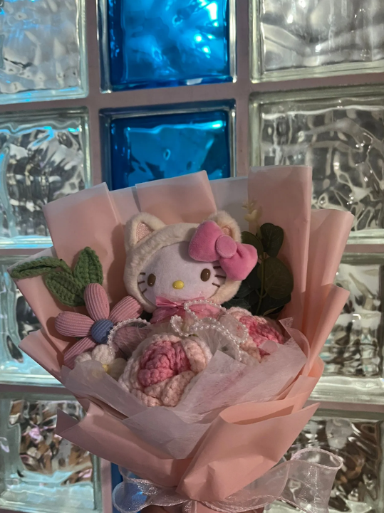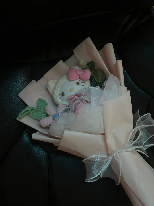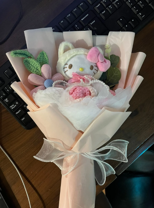 „Bukiet z Hello Kitty wygląda pięknie na moim biurku 💖.”